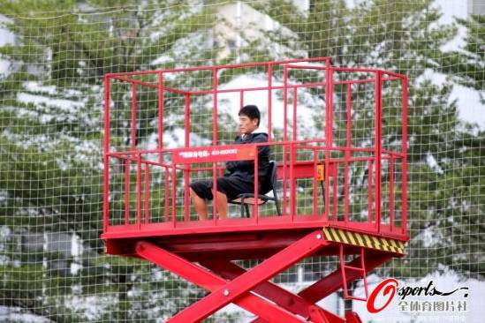 恒大7月份搬往佛山里水新基地之后,由于基地四周只是鐵絲網(wǎng),李章洙完全沒有高點可以站上去指揮訓(xùn)練。因此為了讓鐵帥更好的指揮訓(xùn)練,恒大俱樂部特意給韓國人買了一個可以升高至10米左右的可移動升降機,在國慶期間已經(jīng)運抵里水基地并且投入使用。昨天的訓(xùn)練李章洙就是坐在升降機上升到近10米的高空指揮球隊的對抗訓(xùn)練的。