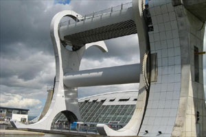 隨著科技的發(fā)展,許多技術與藝術的結合品一件件誕生。其中一個就位于英國,稱為世界十大升降機之一。佛斯與克萊德運河動工于1768年,1777年時她接通了西岸的蘇格蘭第一大城格拉斯哥(Glasgow)與東部佛斯灣(Firth of Forth)的港口城市格蘭茅斯(Grangemouth)。13年后,從格拉斯哥往西到克萊德灣(Firth of Clyde)的水道也完工了。于是,61公里長的佛斯與克萊德運河成了世界上第一條連接兩個海洋的運河航道。1818年到1822年間,51公里長的聯(lián)合運河也建成了。聯(lián)合運河沿著地勢平坦前行的等高線運河。然而,兩條運河在福爾柯克匯合之前,還得克服35米的高度落差。當年工程師們用了11個水閘來解決這問題。