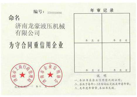 守合同重信用企業(yè)證書