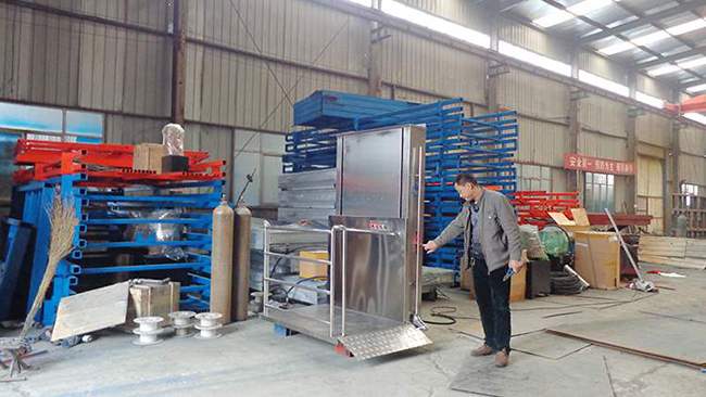 濟(jì)南龍豪液壓生產(chǎn)的無障礙(殘疾人)升降機(jī),主要是由方管做的兩組導(dǎo)軌和升降平臺板組成的然后全部外封不銹鋼板,類似一個簡易的小電梯。整體導(dǎo)軌是鑲嵌在通道出入口的墻壁上,或者什么都不依靠固定在地面上,然后向周圍做固定點(diǎn)。而無障礙(殘疾人)升降機(jī)在不使用時可以放置于地面持平,這樣不會占用通道出入口處的空間。乘坐輪椅的殘疾人在使用時,輪椅四個輪子可以被固定在臺板上,按動開關(guān)后就可以控制升降機(jī)上升下降,安全方便。