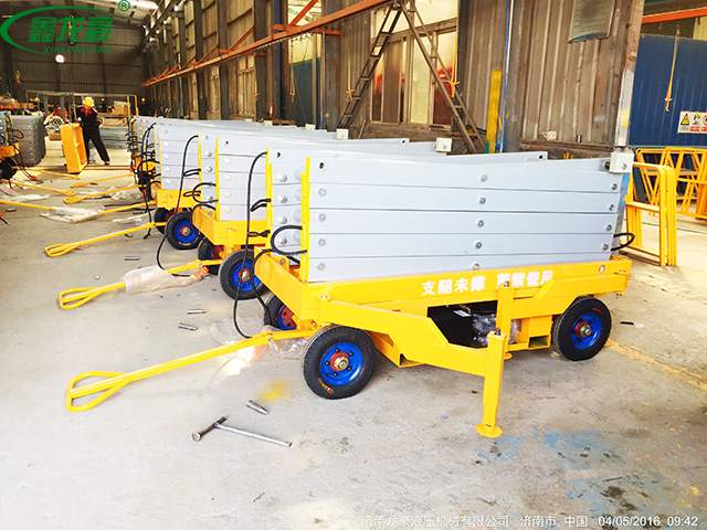 移動(dòng)剪叉式升降平臺(tái)主要技術(shù)特點(diǎn):臺(tái)面鋼板折彎、底架及剪叉結(jié)構(gòu)山鋼定做高強(qiáng)度矩形管材; 標(biāo)準(zhǔn)冷彎槽做道軌,使用尼龍滑塊做導(dǎo)軌輪,接觸面大,升降平穩(wěn),晃動(dòng)?。灰簤河透?nbsp; 內(nèi)置防爆閥(防止油管斷裂,平臺(tái)失速下降),采用進(jìn)口密封圈,經(jīng)久耐用,不泄露;雙層鋼網(wǎng)高壓油管;升降機(jī)專用液壓泵站,加裝應(yīng)急下降閥,平臺(tái)斷電可手動(dòng)控制 下降,內(nèi)置溢流閥,可防止上行運(yùn)動(dòng)時(shí)系統(tǒng)壓力過高,起到超載保護(hù)功能;充氣橡膠輪胎; 電路電器、接觸器羅列連接,加裝熱過載保護(hù),缺相保護(hù)等安全保護(hù)功能;電動(dòng)上、下電動(dòng)控制,控制按鈕盒加裝急停按鈕,以保障財(cái)產(chǎn)及人身安全,各操作部分使用24V安全控制電壓;軸銷圓鋼配做,調(diào)質(zhì)處理;拋丸、噴砂 除銹處理,除去鋼結(jié)構(gòu)構(gòu)件表面的銹蝕及焊接飛濺,能使鋼構(gòu)件表面產(chǎn)生一定程度的凹凸不平的效果,增大粉末的附著力;使用靜電粉末噴涂;涂層外觀質(zhì)量優(yōu)異,附著力及機(jī)械強(qiáng)度強(qiáng),色澤亮度高,經(jīng)久不褪色。